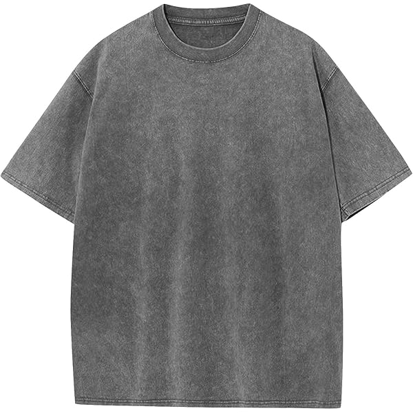 Black Acid-Wash Oversized Crew Neck Short-Sleeve T-Shirt