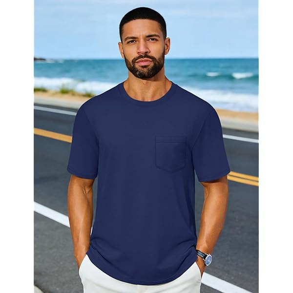 Men's Purple Crew Neck Pocket Short-Sleeve T-Shirt