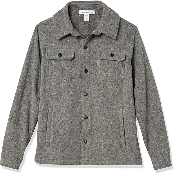 Grey Marled Button-Front Shirt Jacket with Flap Pockets
