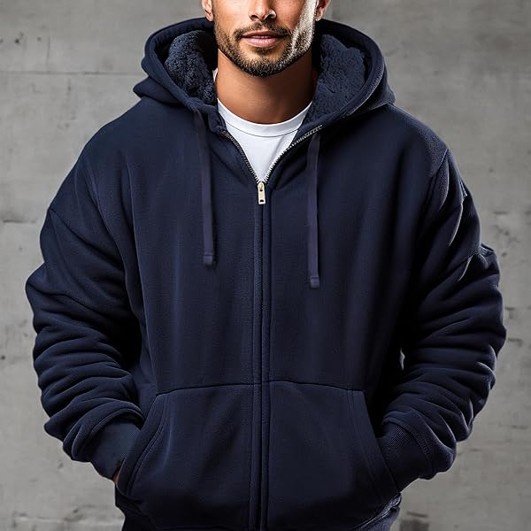 Navy Full-Zip Hooded Sweatshirt with Fleece Lining