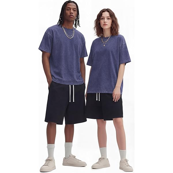 Navy Blue Acid-Wash Unisex Oversized Crew Neck Short-Sleeve T-Shirt