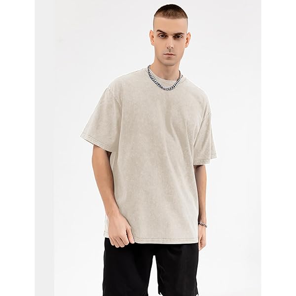 Light Beige Acid-Wash Oversized Crew Neck Short-Sleeve T-Shirt