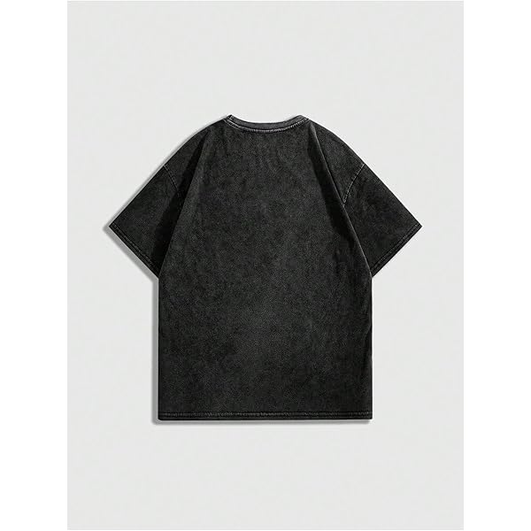 Black Acid-Wash Oversized Drop-Shoulder Short-Sleeve T-Shirt