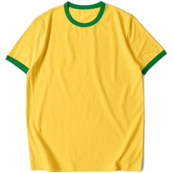 Yellow Crew Neck Short-Sleeve T-Shirt with Green Contrast Trim